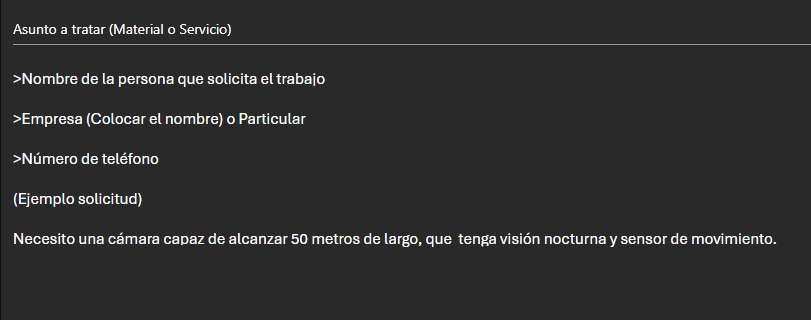 En el siguiente apartado podras encontrar un ejemplo de como cotizar el servicio o material que deseas. Puedes contactar a cualquiera de los siguientes correos: